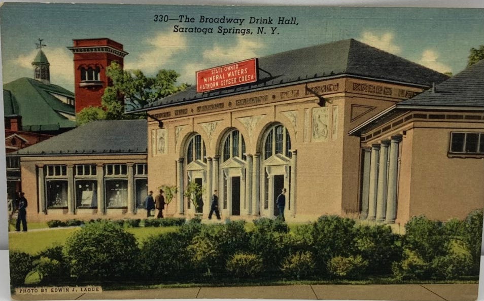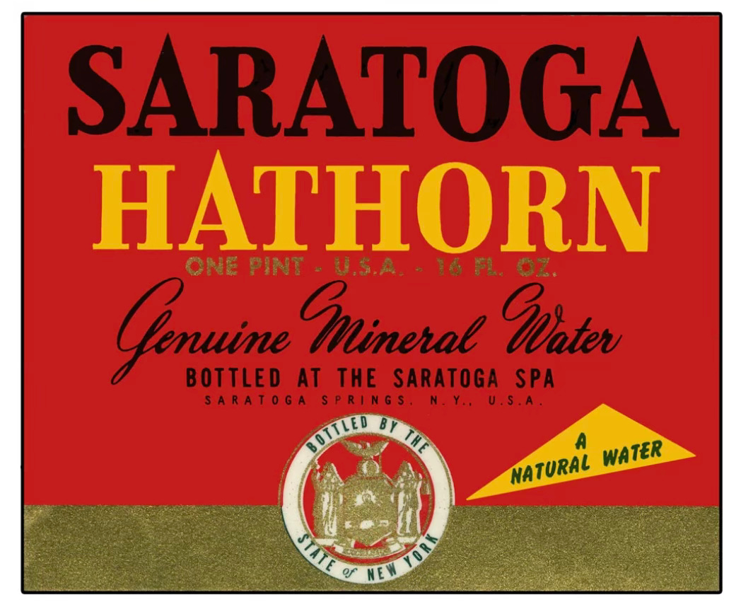 A few tourists tried Coesa water, a mild laxative with a salty taste and a yellow label suggesting “caution”. However, the elderly immigrant Orthodox Jews from New York City, who came to Saratoga for the mineral baths, only drank the third option: Hathorn water. This was a full-out purgative with a salinity 1/10th that of seawater. Hathorn bottles sported red labels that essentially implied: “Stop. Proceed at your own risk.